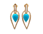 18KT Yellow Gold Earrings—featuring 2.17 carat diamonds and 7.69 carat turquoise.