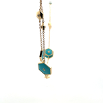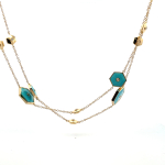18k long yellow gold necklace with 8.80cts of turquoise set with 1.13cts of diamonds. with 4in extension